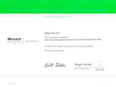 Имеет множество сертификатов, обладает званием сертифицированного администратора и инженера Microsoft: Microsoft Certified System Administrator (MCSA) и Microsoft Certified System Engineer (MCSE). Первую сертификацию в УЦ "Специалист" в МГТУ им. Баумана получил в 2001 году и стех пор постоянно совершенствует свои знания и систематизирует их, получая новые международные сертификаты. Проверить большинство его сертификатов и даты их выдачи можно